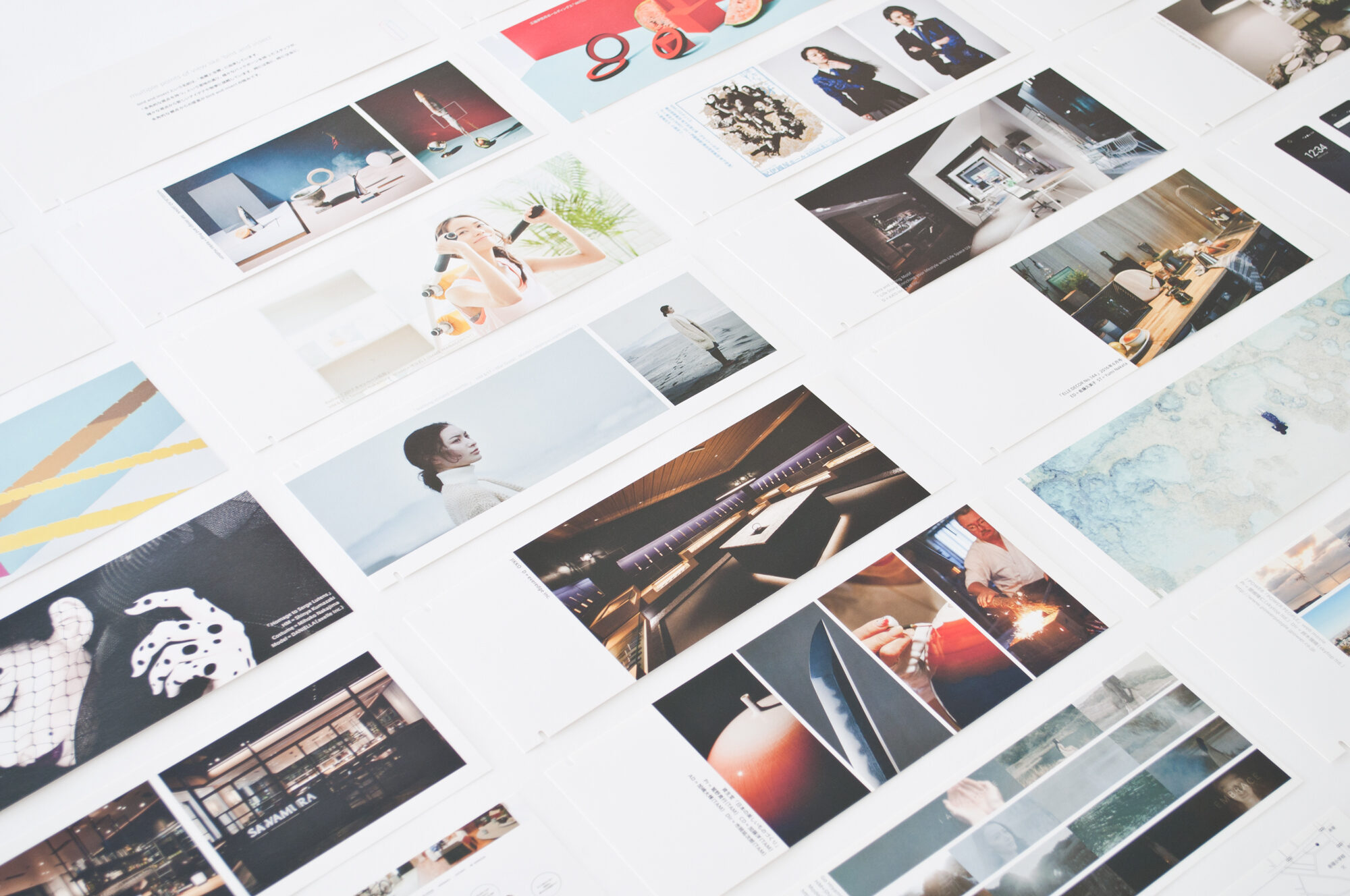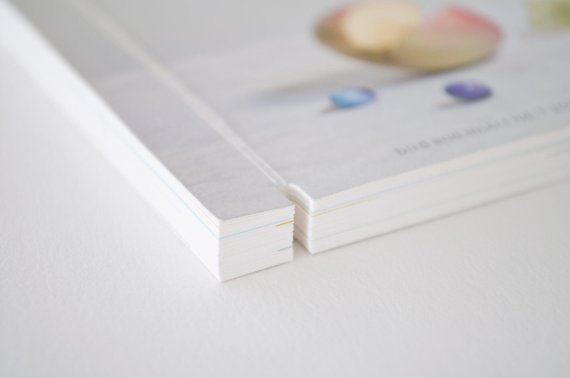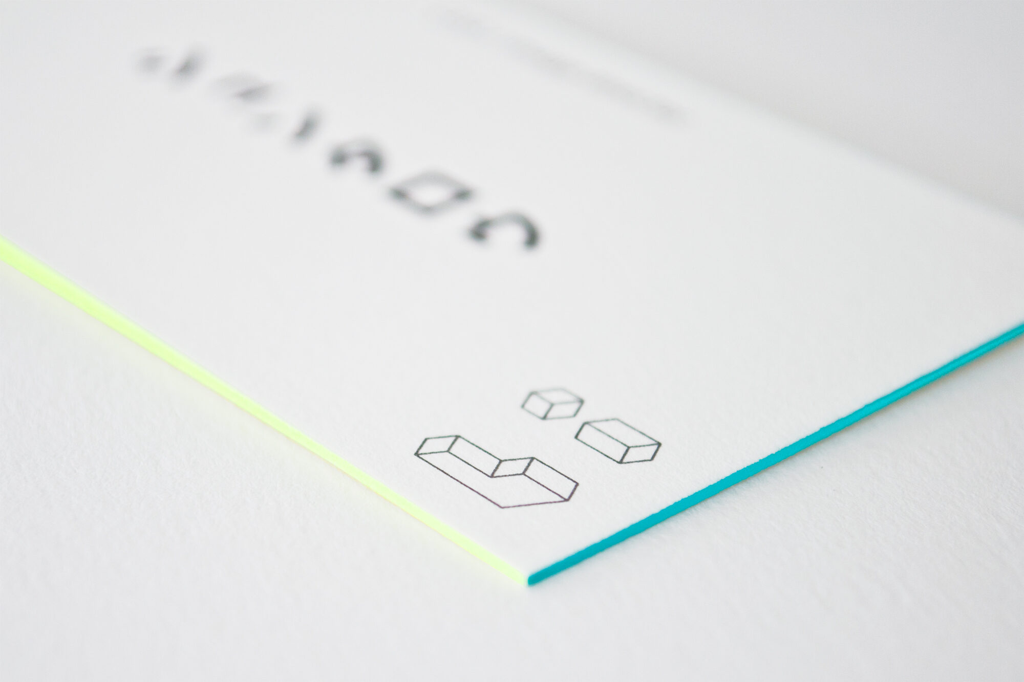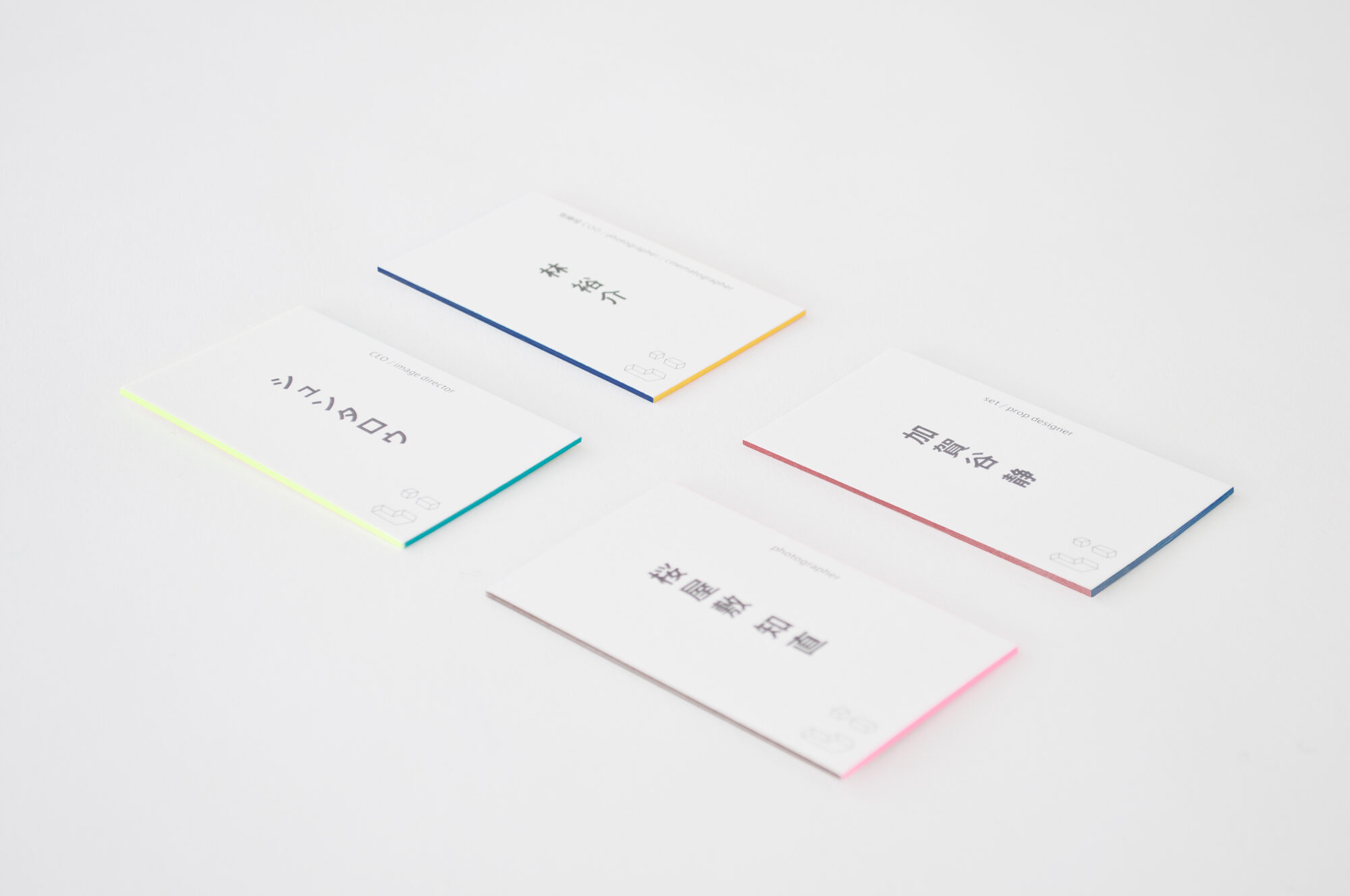 「多角的な視点を持つ」ことを表現したロゴはbとiでその視点が異なります。エッジに色がついたロゴに合わせて、名刺のエッジにも色が付けられています。これはメンバーごとに異なる色になっており、バックボーンの多様性とカジュアルなイメージを体現しています。作品集はゴムバンドで留められる形式で、作品の入れ替えが簡単に行えるよう考えました。