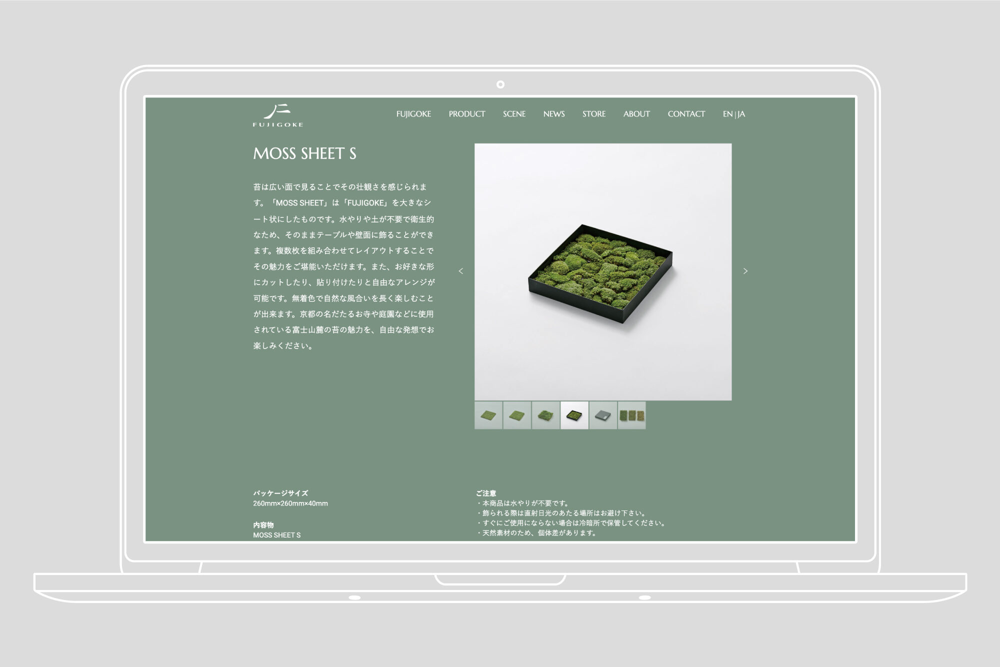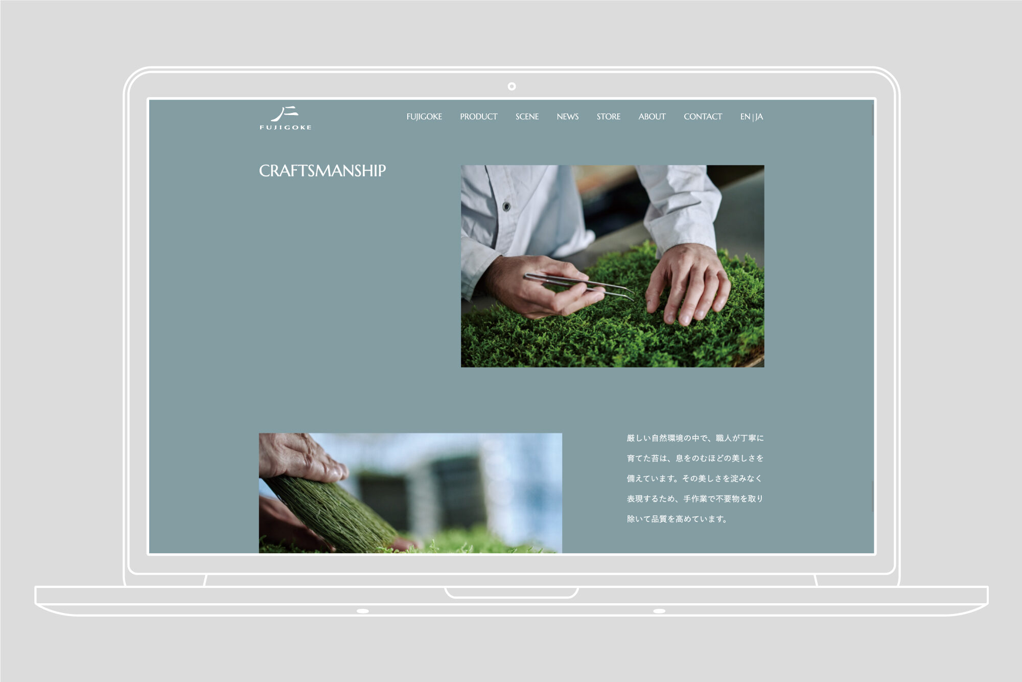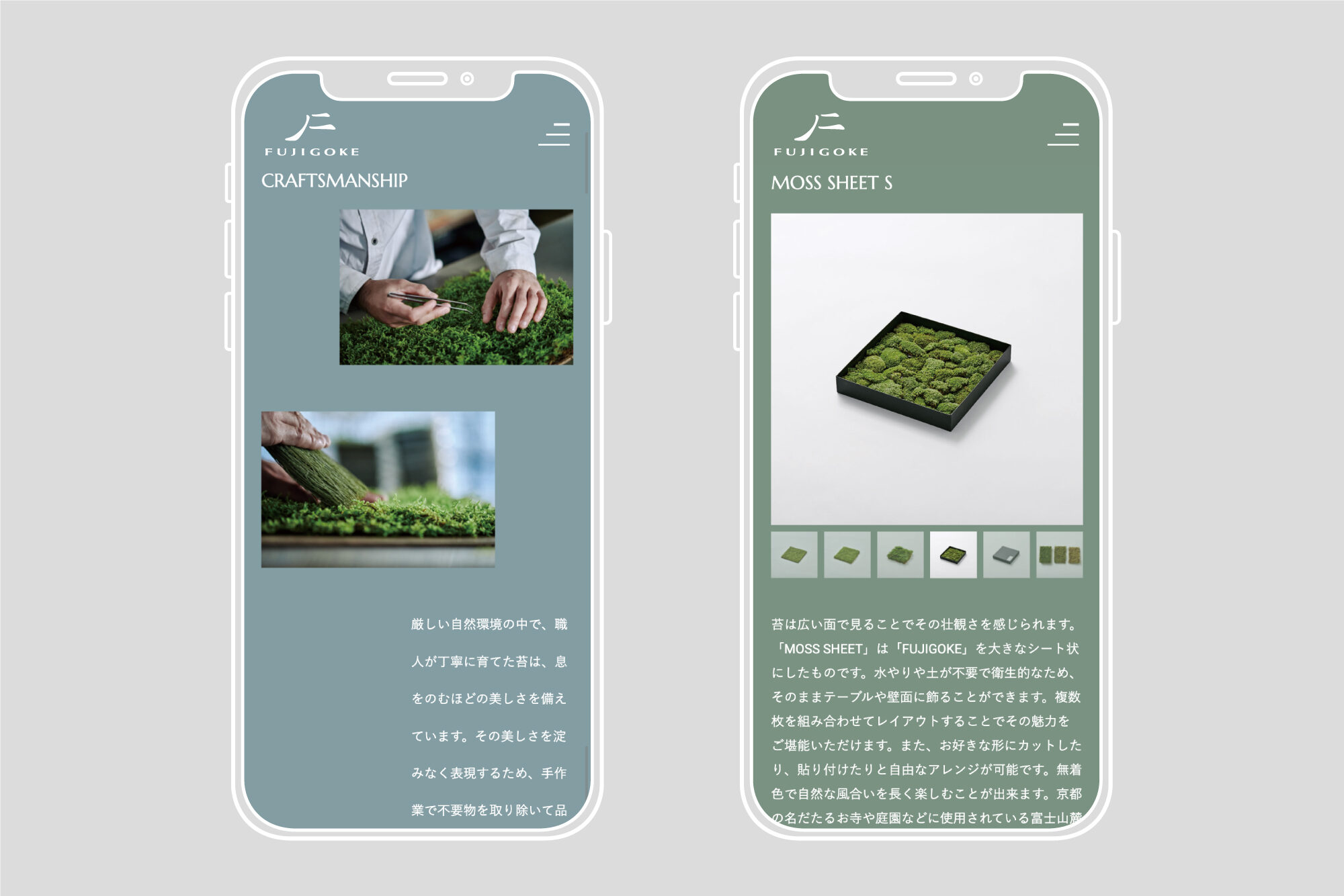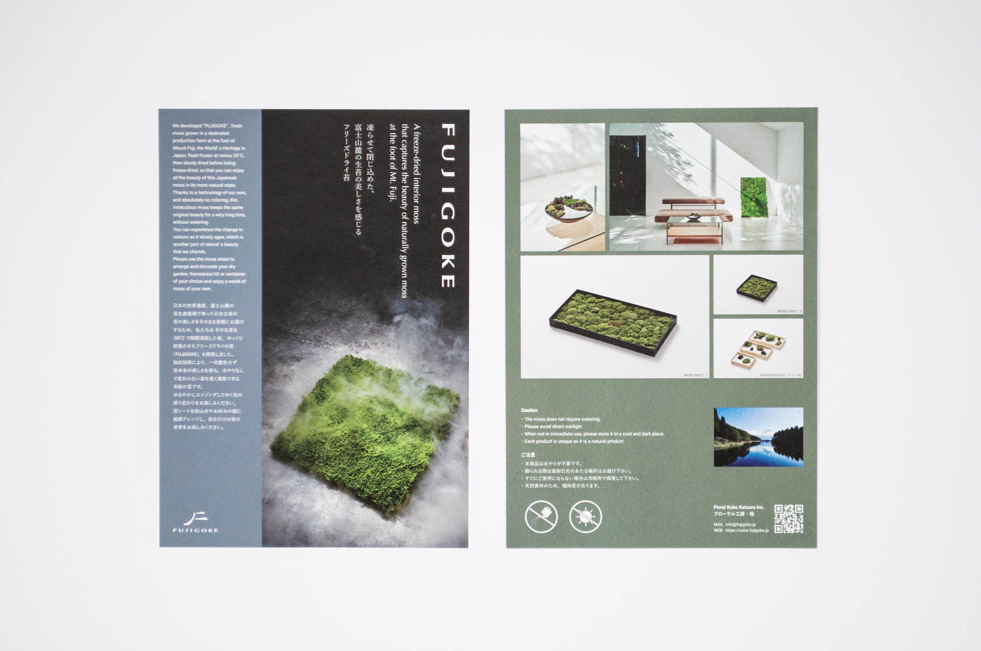FUJIGOKEは、富士山麓の生苔を使用したフリーズドライ苔です。苔を通して、日本文化やその精神性を体現するデザインを目指しました。ブランドムービー・スチール写真のディレクション、ロゴ・リーフレット・パッケージのグラフィックデザイン、ウェブデザインを担当しました。