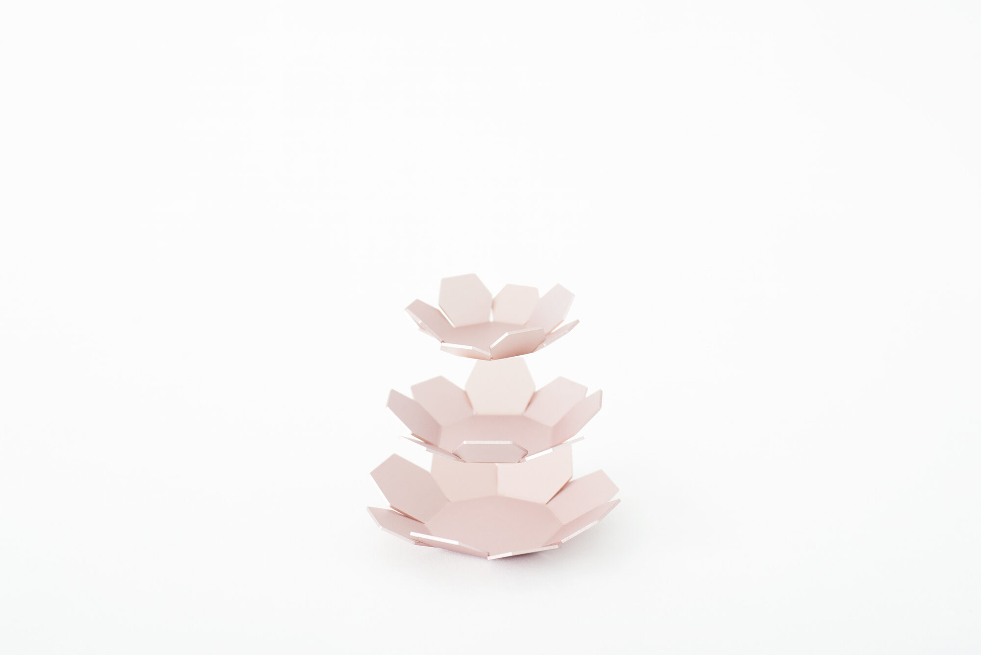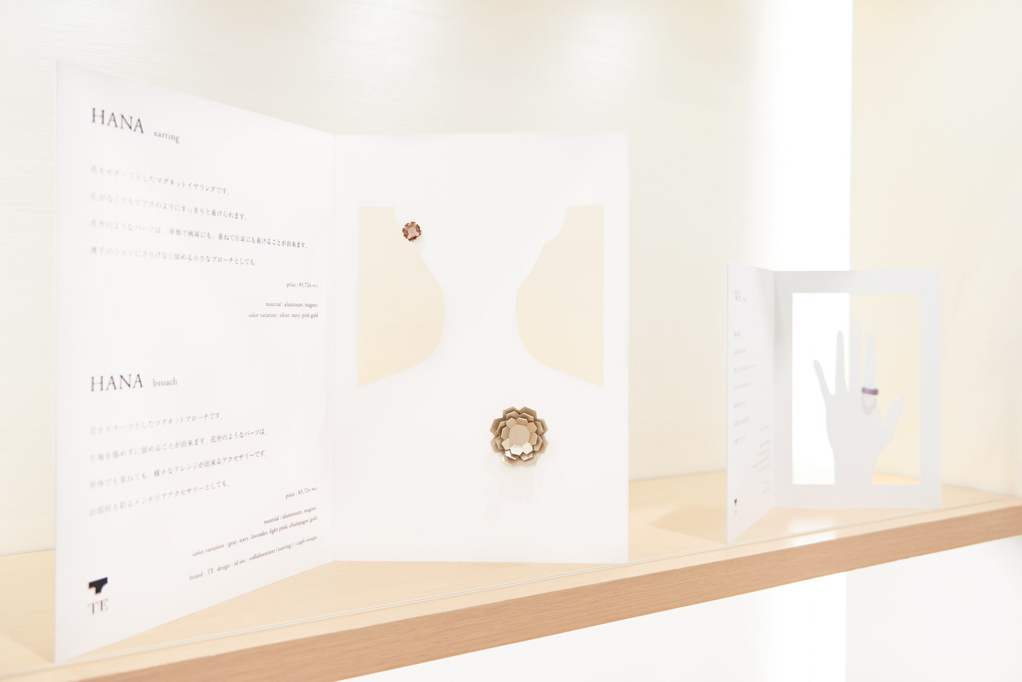 caph troupeとのコラボレーション。「HANA」をより小さくしたマグネットイヤリングです。花弁の ようなパーツは、単体で両耳にも、重ねて片耳にも着けることができます。孔がなくてもピアスのように すっきりと着けられます。