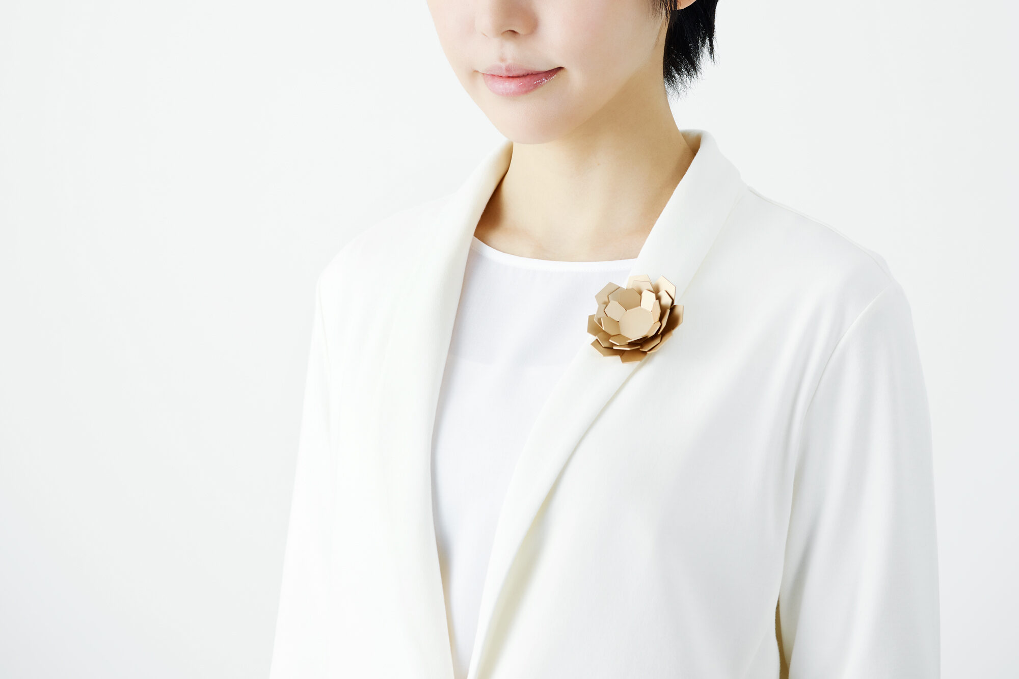 「花」をモチーフとした形状のマグネットです。花弁のようなパーツは、単体でも重ねても使うことができます。 生地を傷めないロゼットブローチです。