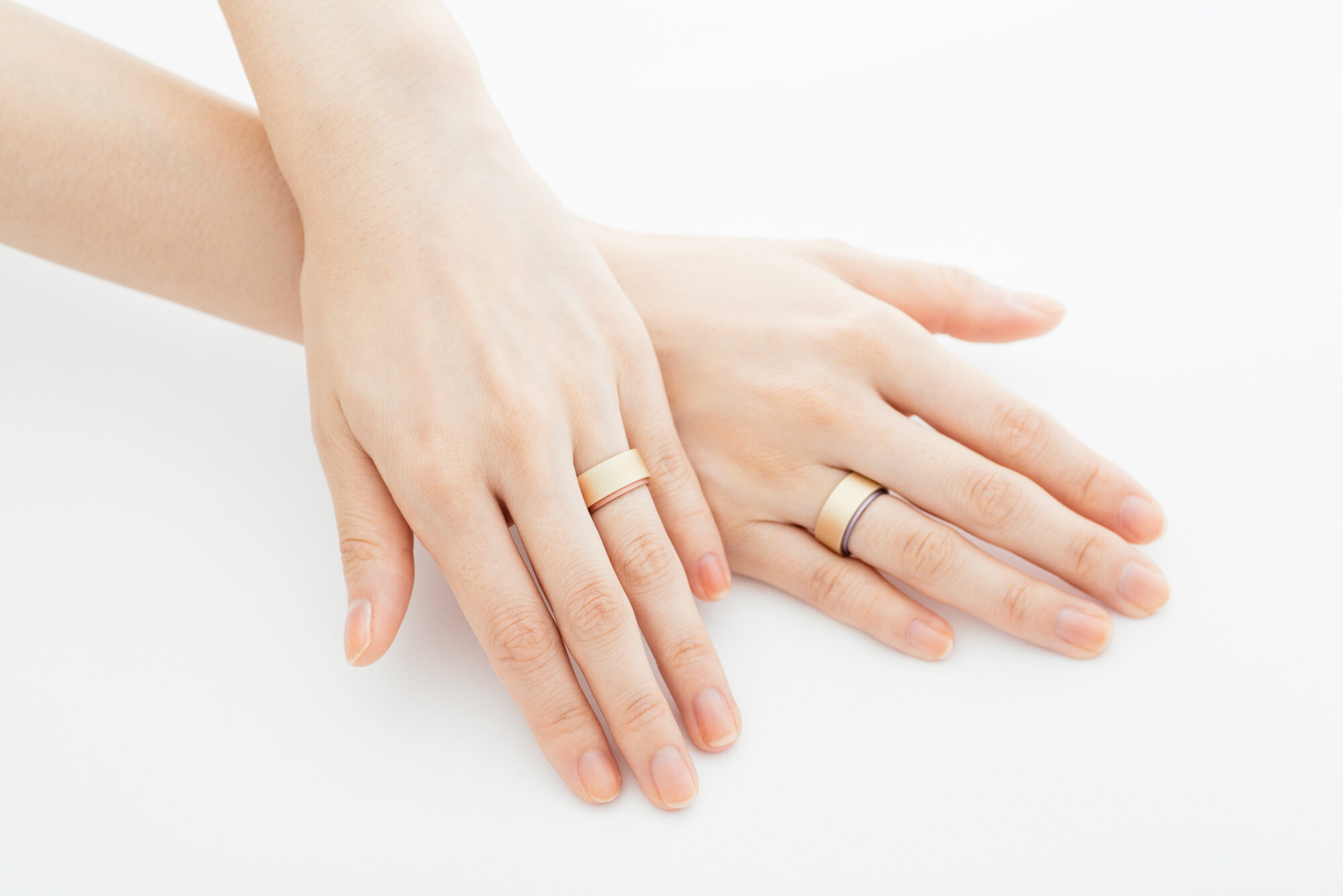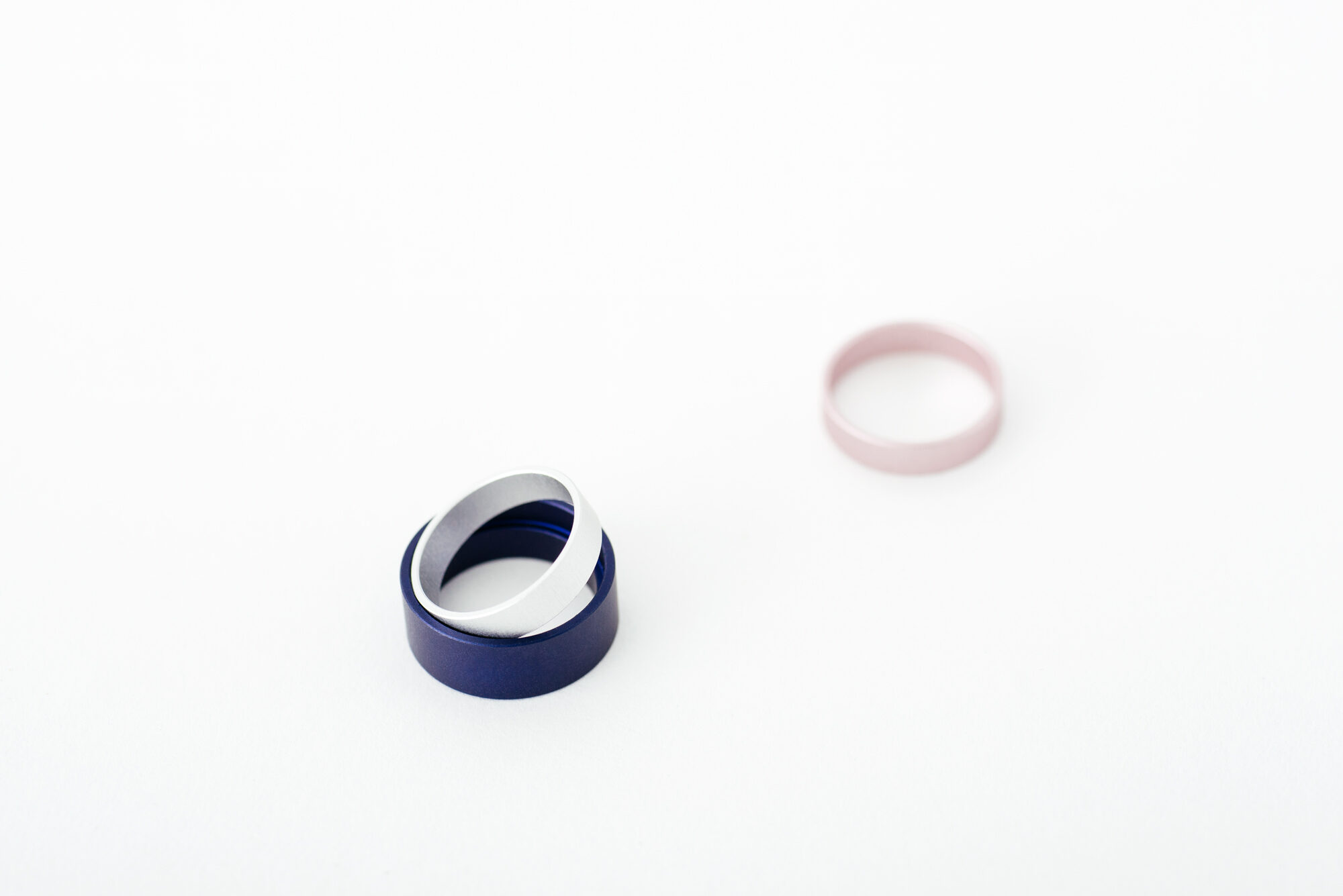 「輪」を重ね、色の組み合わせを楽しむことができるリングです。 内側の段差によって、下のリングが さりげなく顔を覗かせます。