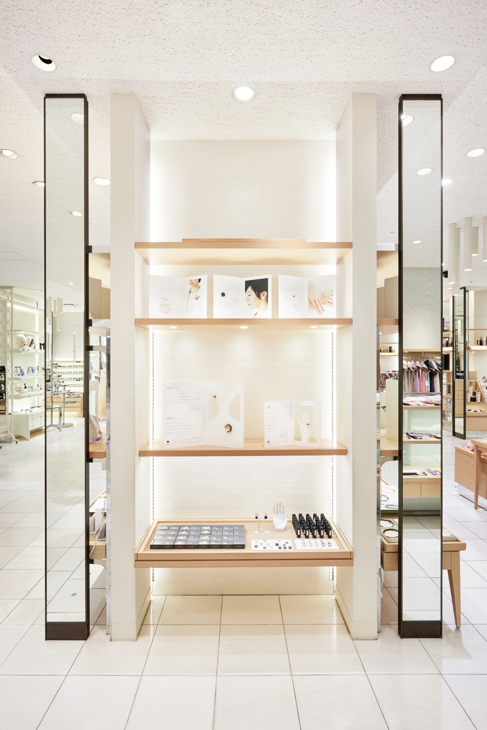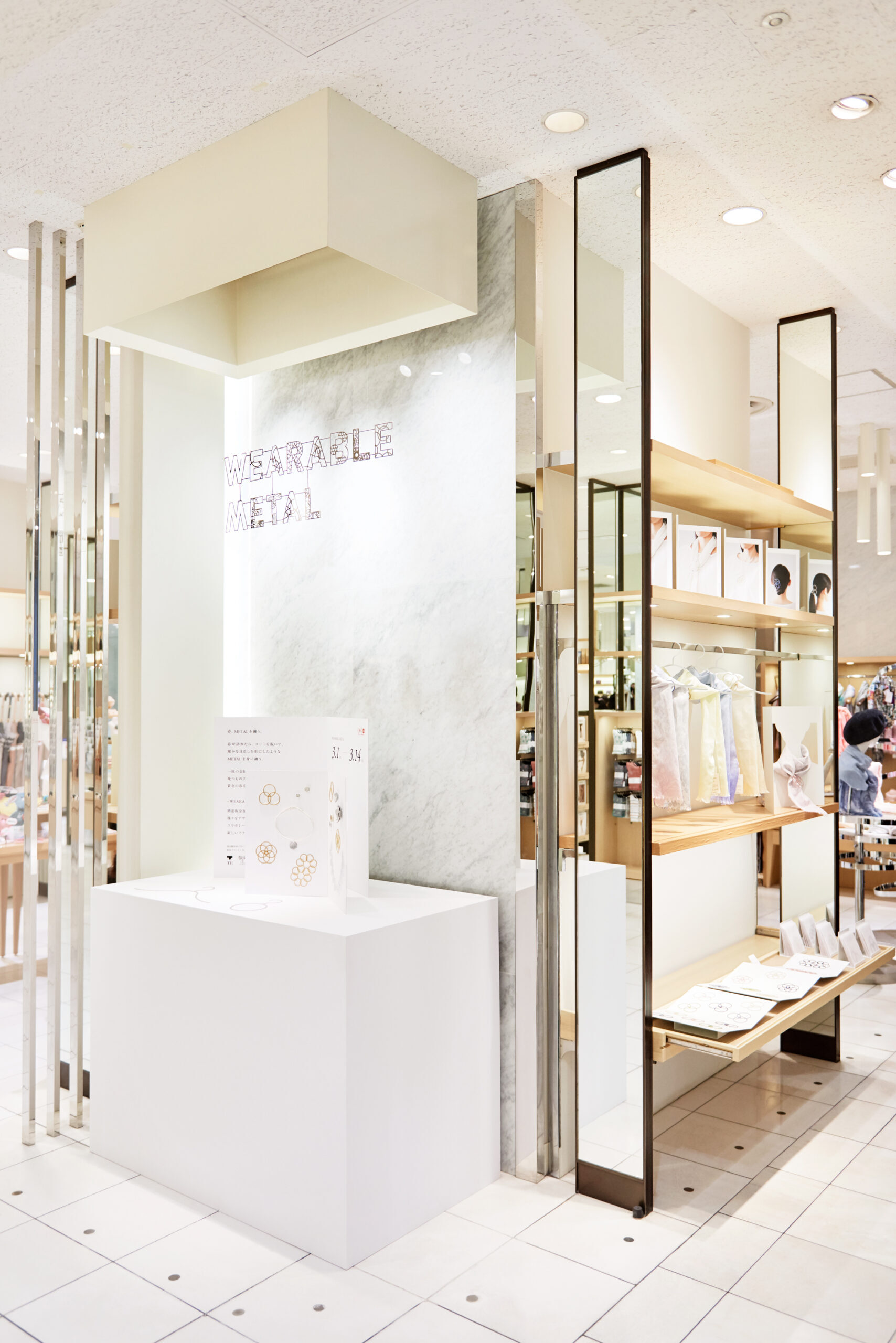 伊勢丹新宿店本館で開催されたポップアップストア。1枚の金属板から生まれた幾つものストーリーを伝える為、本のように開いた形状の什器を考えました。