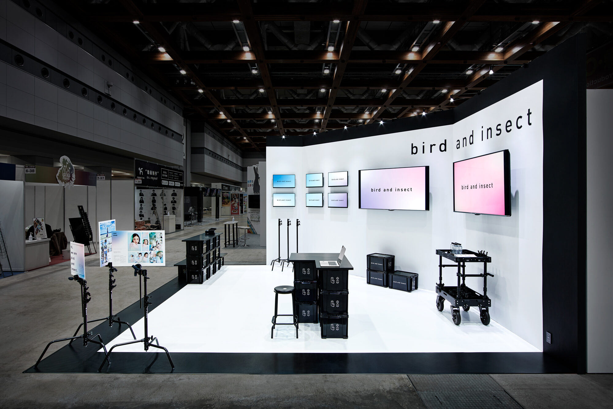 写真・映像の制作を主体とするクリエイティブスタジオbird and insectのコンテンツ東京での2020年から2022年にかけての展示ブースデザイン。