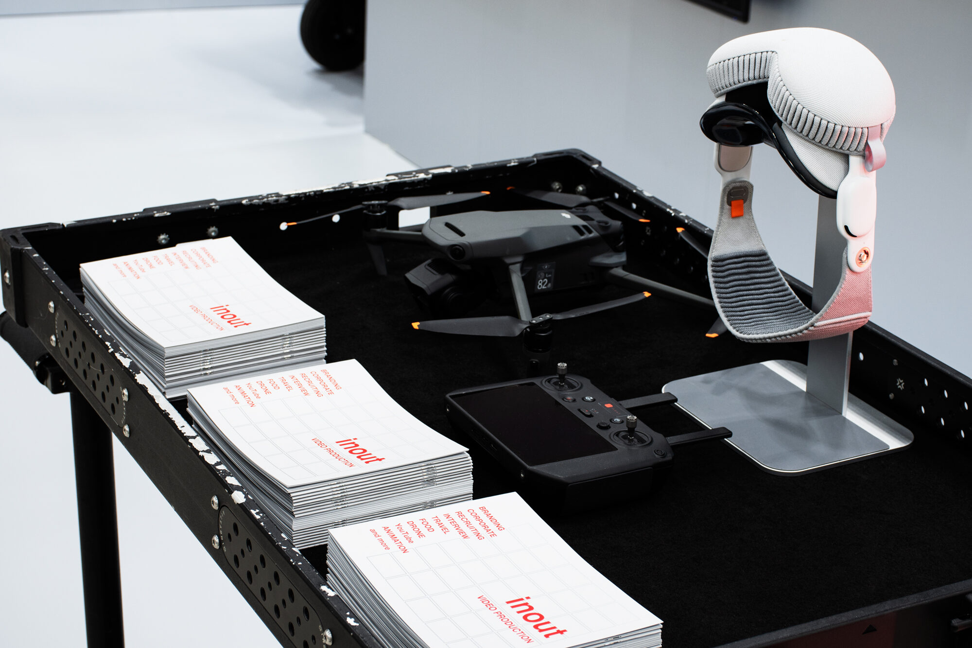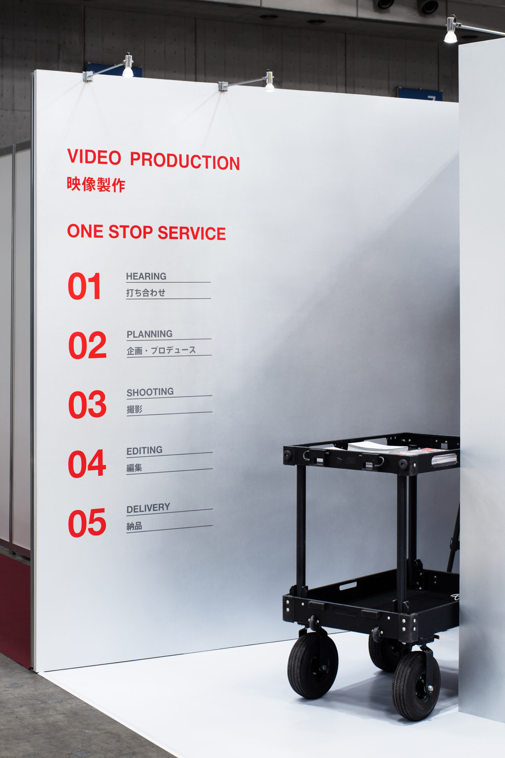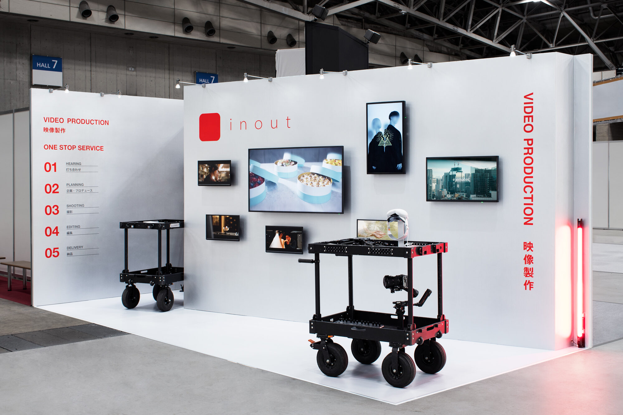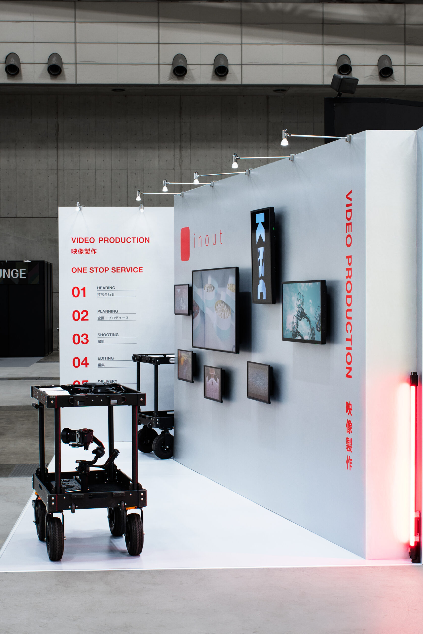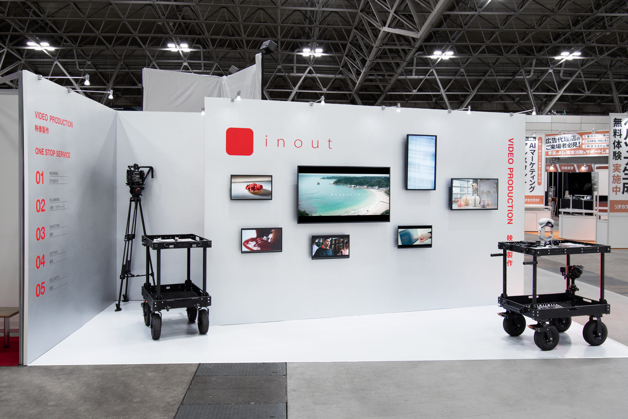 映像製作のワンストップサービスを提供するinoutの展示ブースデザインとグラフィックデザイン。