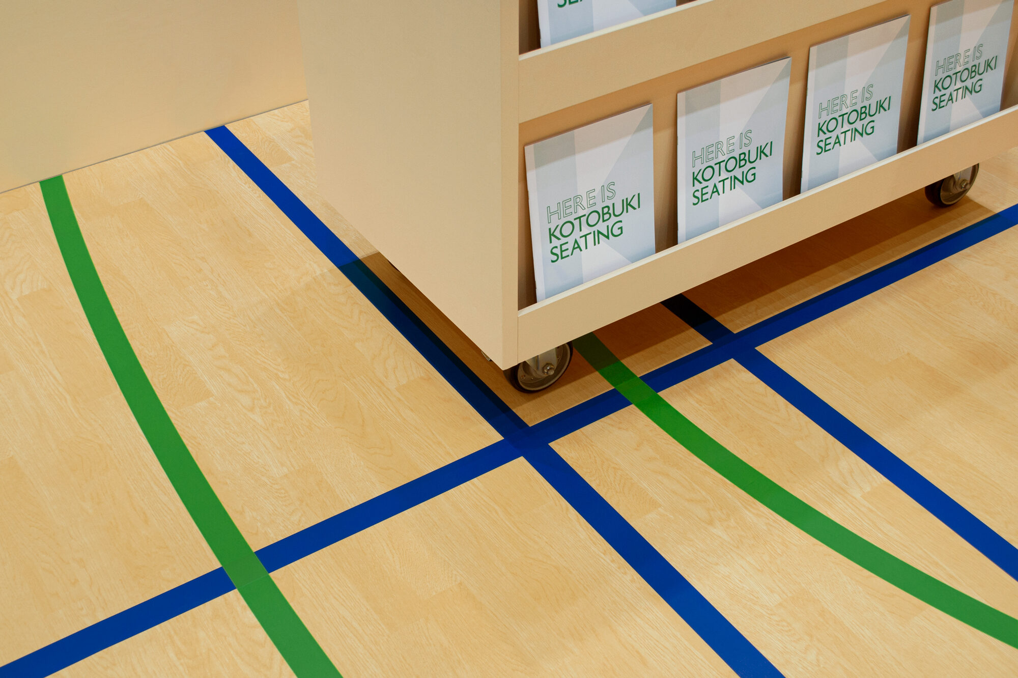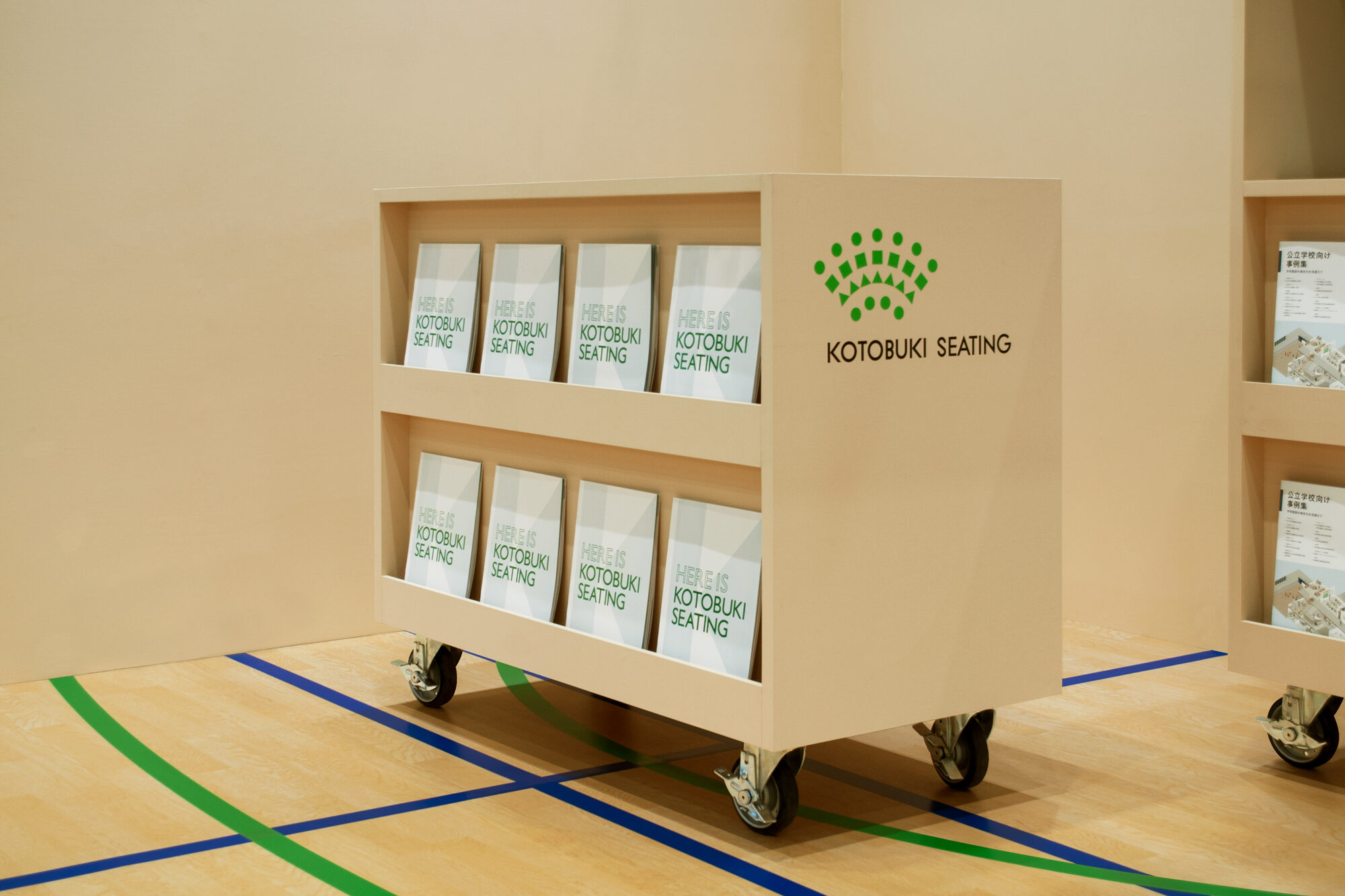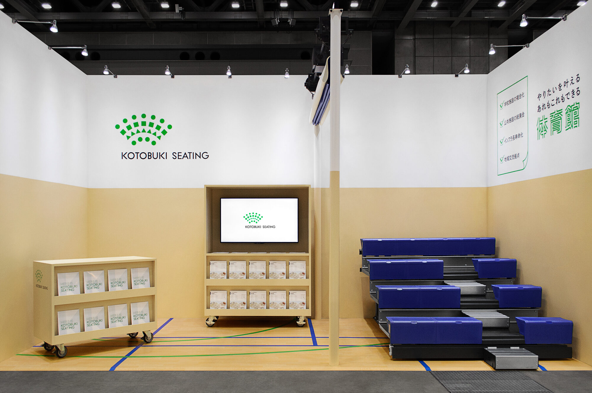 コトブキシーティングの体育館で使用する製品のための展示ブースデザイン。