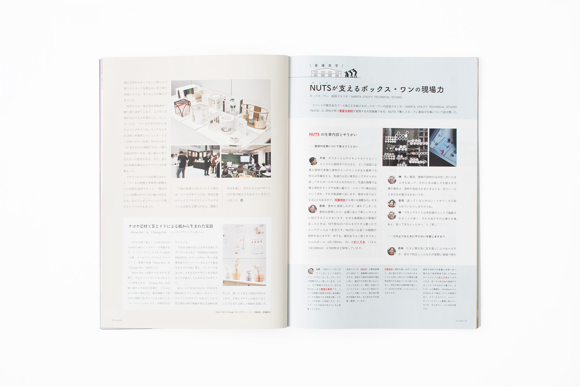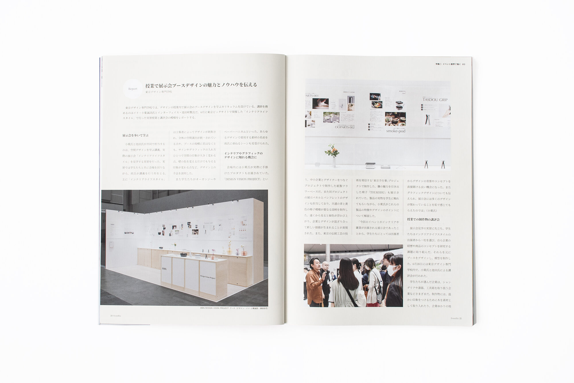 ブースデザイン授業についてのインタビューとレポートが Event Biz Vol.36 に掲載されました。弊社小栗が講師を務める東京デザイン専門学校での授業の取り組みについてお話させていただき、展示会を歩いて行う課外授業と講評会の様子を取材していただきました。また、最新プロジェクトとして、Design Vision Project を取り上げていただきました。