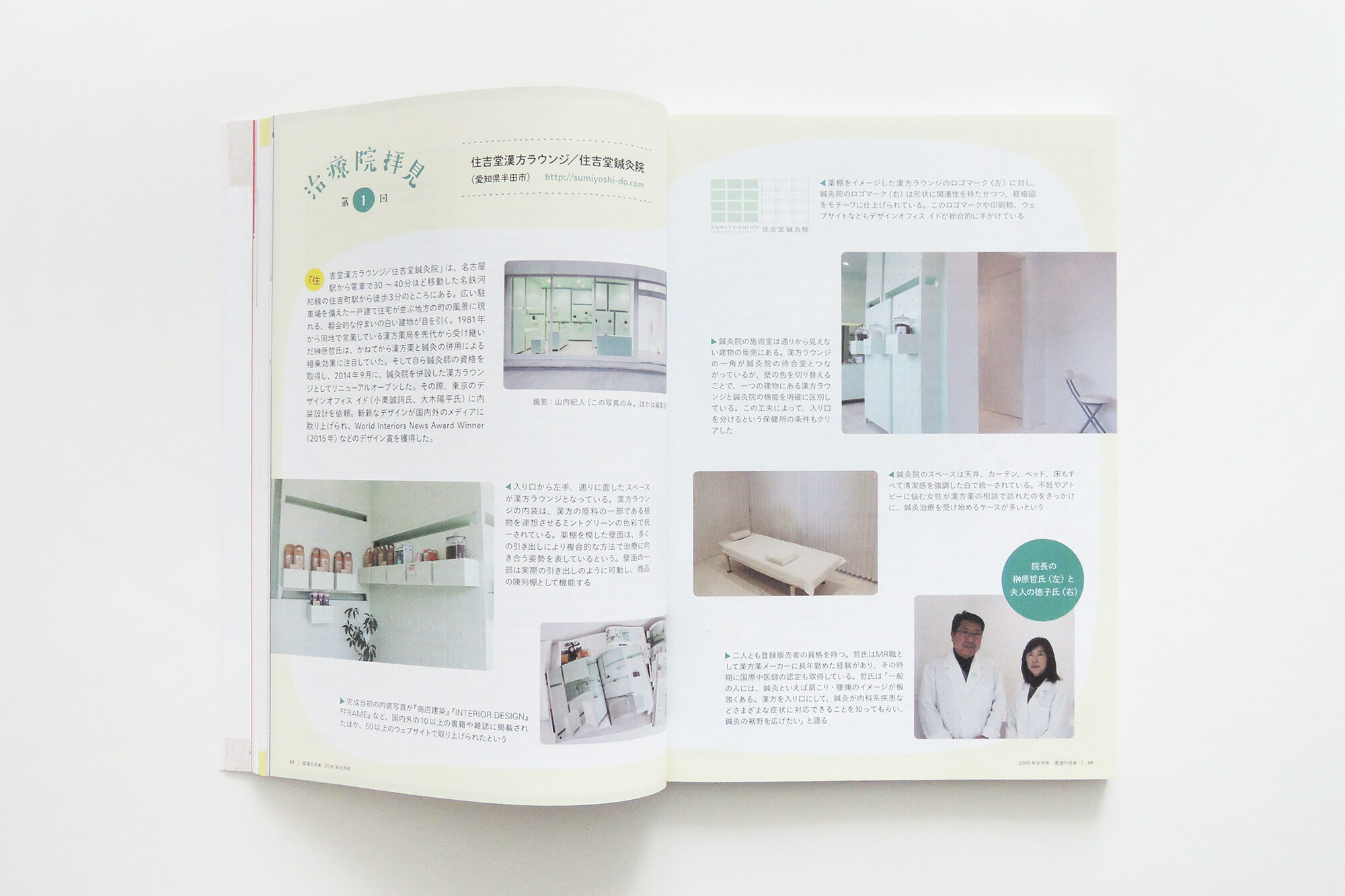 SUMIYOSHIDO kampo lounge, clinic for acupuncture and moxibustion was covered on The Japanese Journal of Acupuncture & Manual Therapies JUNE 2016 Vol.75 No.6, designed by id inc.