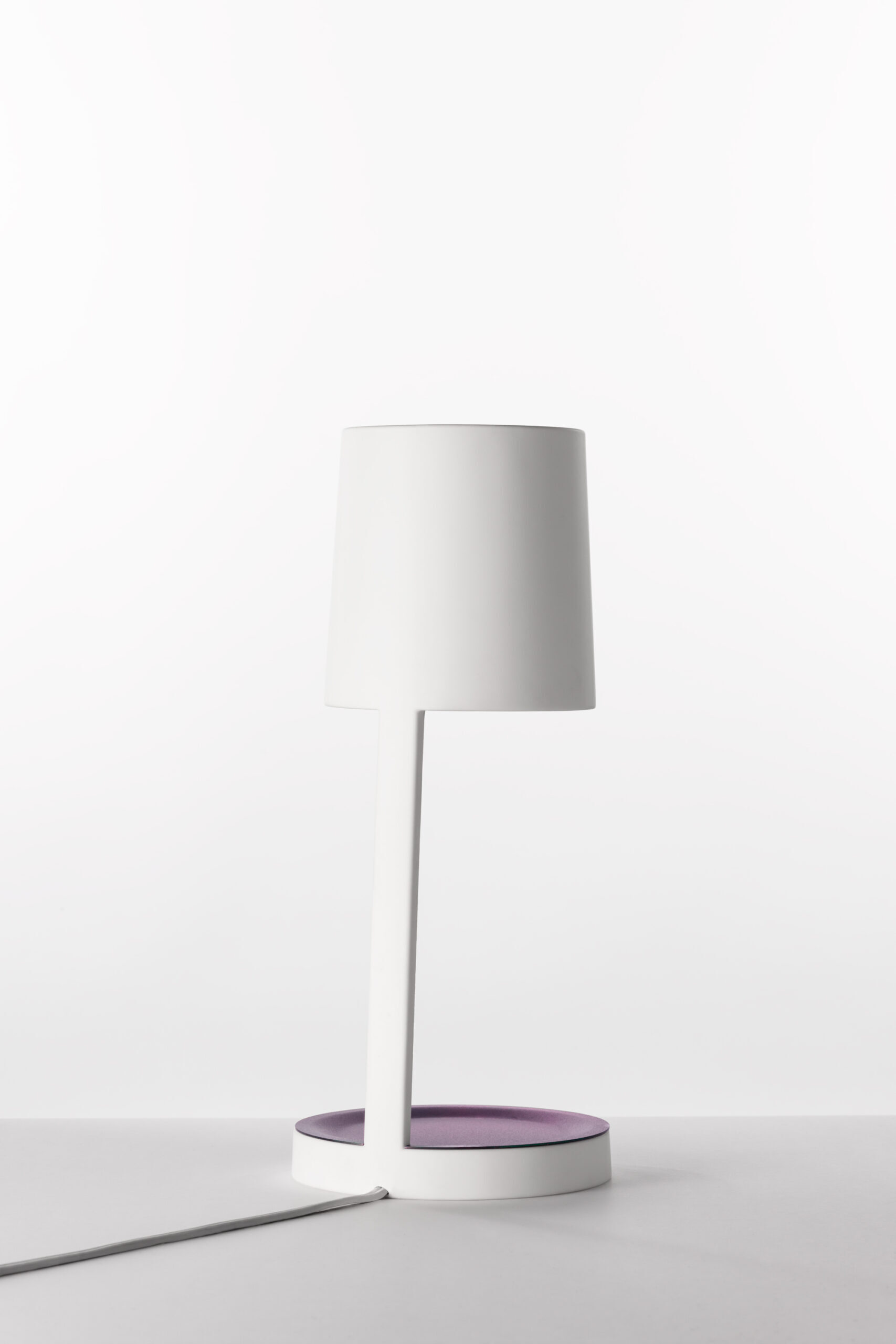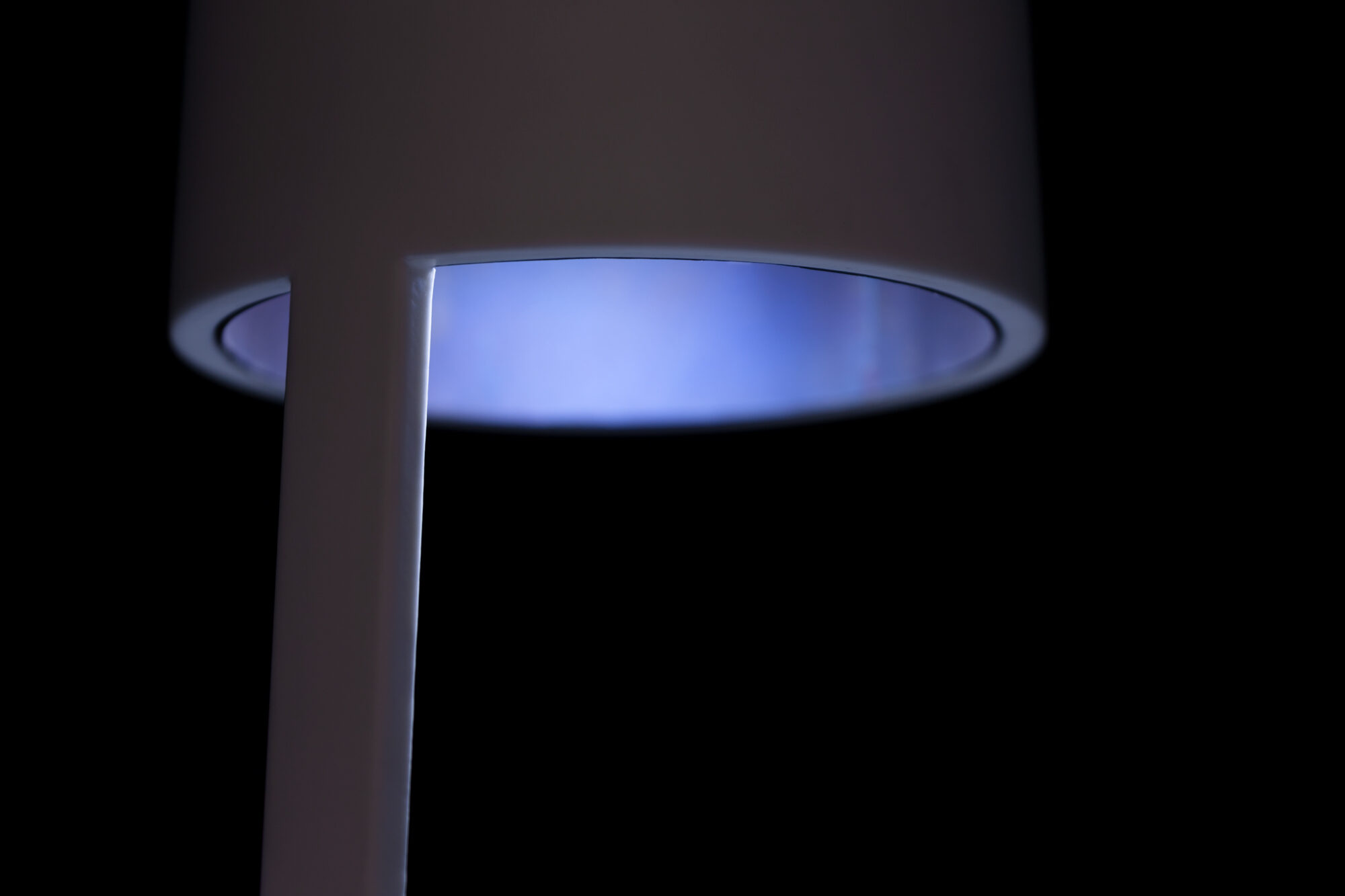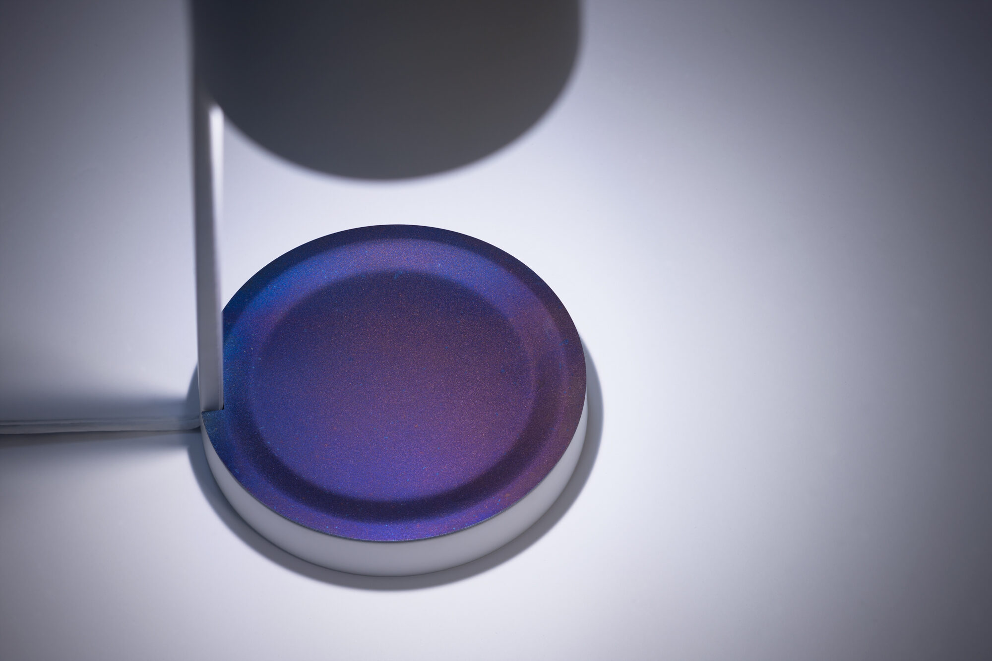 ベース部分とシェードの内側に、熱処理により色彩を施したテーブルランプ。