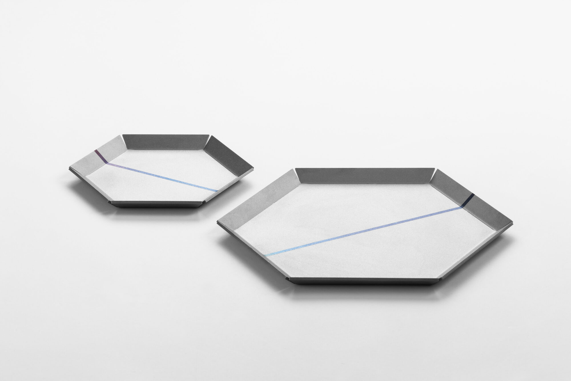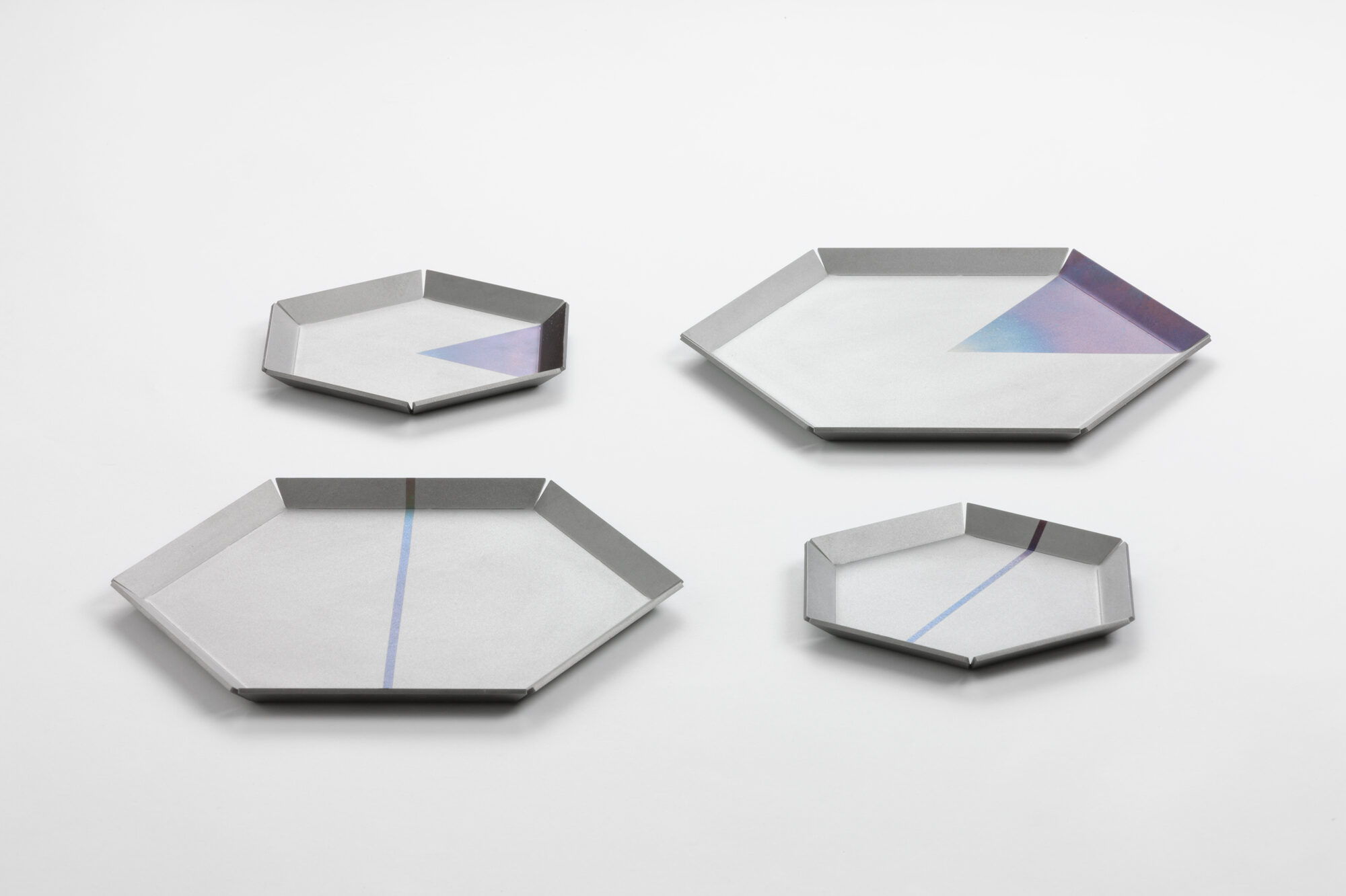 熱処理により色彩を施したトレー。