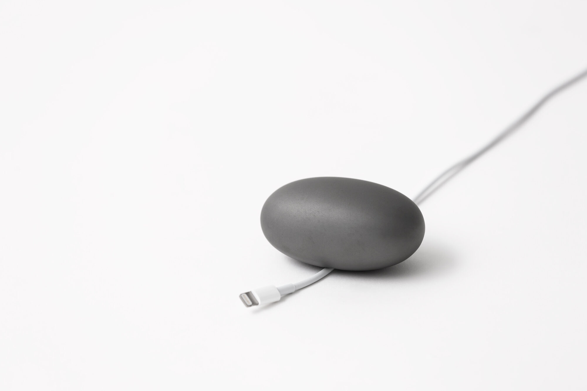 石のような形状の小物入れとコードホルダー。