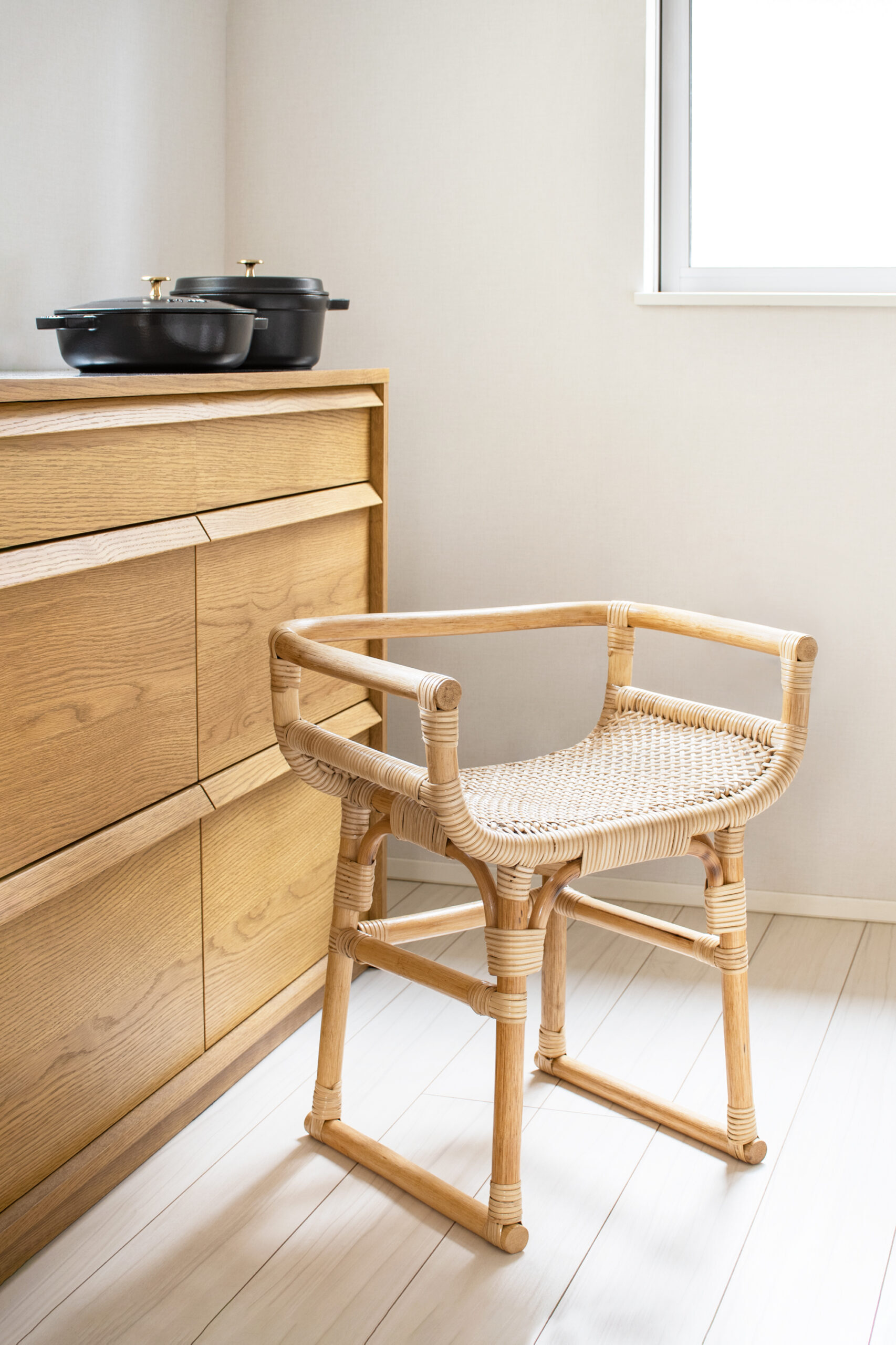 天然素材の魅力と伝統技術の調和により生まれた籐の小椅子のデザイン。